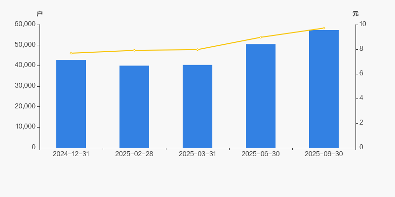 自2025年2月28日以来,公司股东户数连续3期上涨,截至目前增幅为43.38%。2025年2月28日至2025年9月30日区间股价上涨22.95%。
