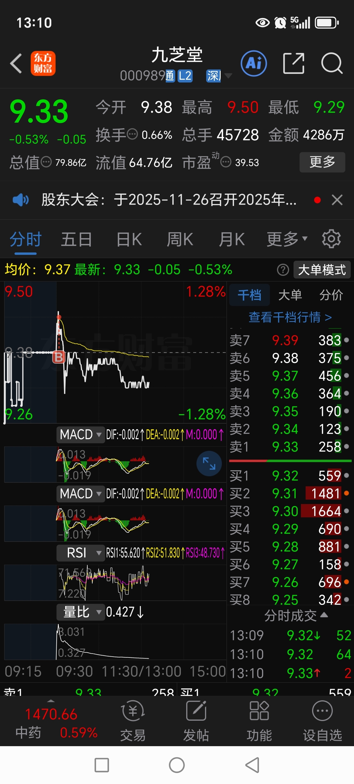 $九芝堂(SZ000989)$ 又买在尖尖上了