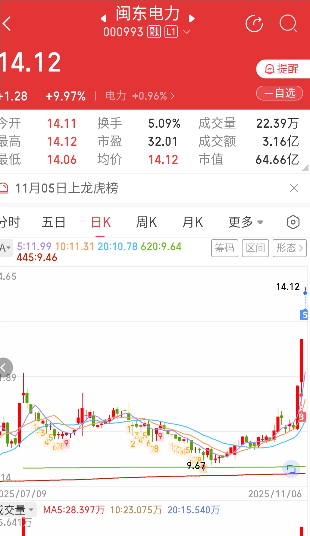 $闽东电力(SZ000993)$ 超短线,二十个点足以