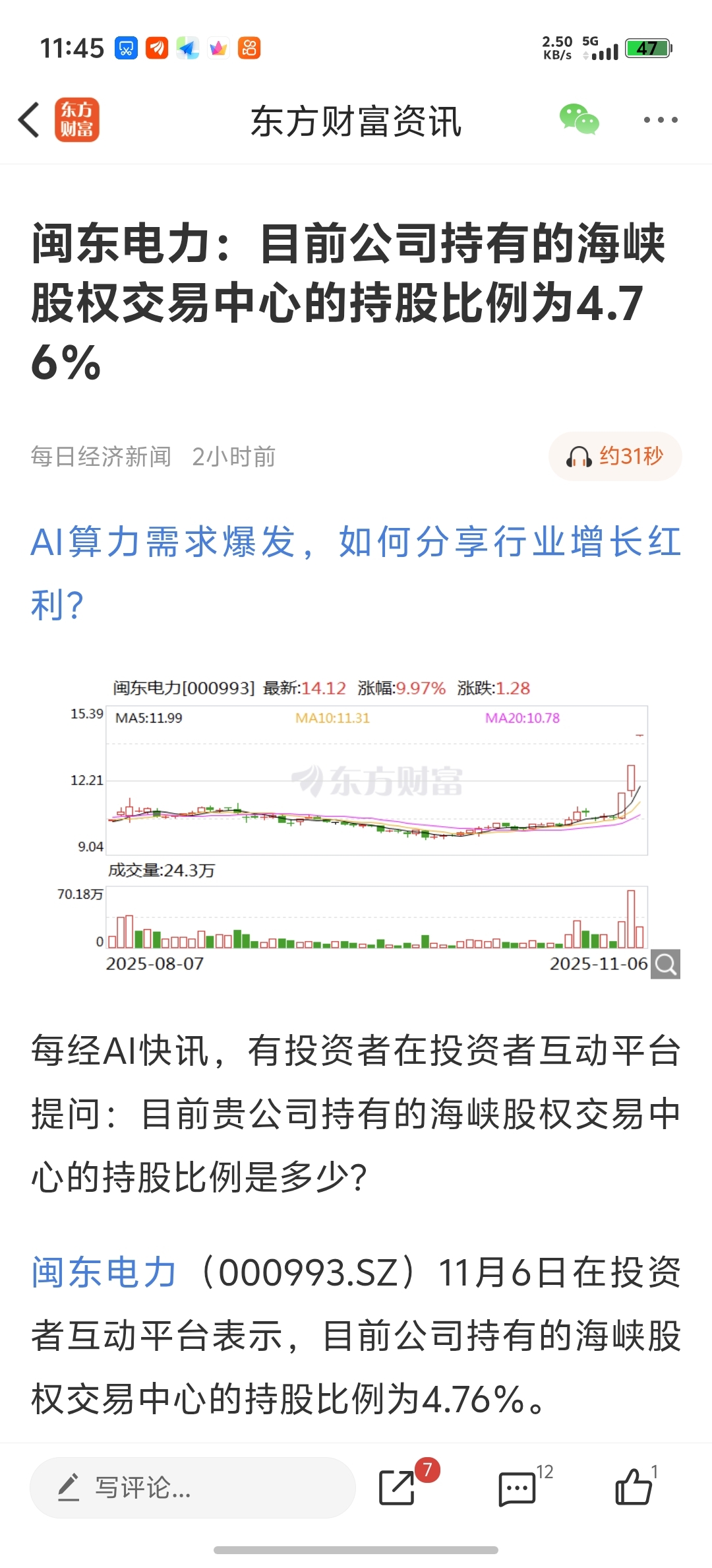 $闽东电力(SZ000993)$ 闽东要带领电力板块儿高举高打了,重大利好呀这是