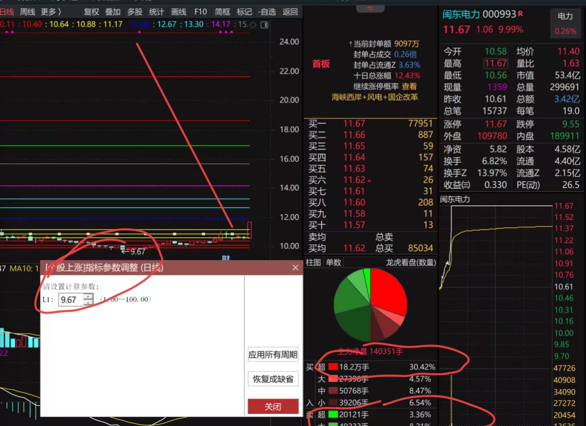 $闽东电力(SZ000993)$ 在 11.89 上方不买只看热闹或直接删除也可,坚持买阴不买阳, 在 10.88 有一定支撑,不有效跌破就买,跌破就不买,这是纪律坚决执行。宁可错过也不犯错!!!它在主图最上方显示上方的阻力位依次有 11.17 11.89 12.67 13.30 14.17 等,哪里冲不过就在哪里出!只希望他在回踩 不跌破时买进,跌破千万不要买!这是纪律!有资金进去的不怕他跌,怕他不跌,跌才有机会,坚持不追涨原则。天天有股选何必去追涨呢。如果跌破 则可能向下到 等等下面的就不说了,不严格扏行止损纪律就同样可以向下计算出万丈深渊!任何指标不可能单独起作用,维一有用的是(坚持止盈止损:)这是血的教训!!!就是说我计算的某个点位明显冲不过去就要止盈!某个点位明显支撑不住就要止损!但是这点非常难做到非常难执行,我自己也好多次做不到,教训深刻[流泪][流泪][流泪] 所选个股都是只做两叁天,原则是次日不涨停就抛换一个做,超级短线! 现在有个做得很红火选股器广告,说如果本金10万每天赚1%,250个交易日可以做到400万元,这是广告,广告没有一个是真的因为实盘做不到每天赚1%.但要树立超级短线的理念。我同样做不到但升级后的选股器超级短线成功率相当高了! 25年元月1号起选股业绩是1号选的海德控制7↗连板,9号选的金奥博7连板,9号选的苏豪弘业6连板,27号再次选的杭钢股份开年七连板,2月5号选的浙数文化六连板了,6号选的新时达7号可买随后停牌复牌后将近7个一字板。3月14号选的中科云网和皇氏集团贝因美及金发拉比4个板,贝因美3连板了。由于修改方案专门选小阴小阳的很久没选出来涨停板的了,4月24号选的宇晶科技25号阴线开盘随后板了,5月8号收盘后选的河化股份9号平开随后涨停。6月11号上午10点钟选的天安新材当时才涨4个点,随后不久涨停,6月16号上午选的创新医疗当天才涨4点多17号涨停!19号晚上选的强力新材20号涨20%!6月25号中午12点多钟选的华媒控股当时没涨次日午后涨停! 122个交易日76个10%。理论上7个10%就翻倍!有些连板股次日不给机会上车但说明我的选股方案非常好!我这个股市神枪手值得关注! 优化升级后的人工智能选股大数据模型选出来的,多数是小阴小阳的这种涨的慢但安全要有耐心,有些是已经涨停板了的当天买不到,只能等次日回调不跌破我计算的某个关键点位时买入,跌破了的千万不要买!这是纪律。注意买后有赚就可以,赚了就跑,快进快出,模拟手动量化交易。 这个免费选股器隔三差五总能选出连板飚升股,效果非常好!虽然还是不能百分百准确,但网上能够经得起公开验证的不多见,比网上任何高价昂贵的软件强百倍,而且我这个是免费。可以查查我24年8月19号收盘后选的常山北明的帖子,从6.23最高涨到11月1号39.88翻了5.4倍!其他连板飚升股太多了懒得统计!网上那些大w虽然粉丝多但只讲板块和指数,那是放空炮!没有实际意义,其实际操作水平经不起个股的验证!买什么买哪个我直接点对点精准出击。不要浪费时间看大w的。 总是有些没有修养的喷子喷人,我会拉黑永久屏蔽他,这些点位对已经持有的人有很大提示参考价值。 我画的这些彩色横线是我自己研究了多年才得出的,每根横线处股价有效冲过了就是支撑,冲不过就是阻力,是我的独自研究的,很准的。请仔细看照片,也请你自己同时在你自己电脑行情软件上我说的那几个价位上画横线,可以看见已经走过来的历史很清楚地展示出来了支撑和压力,未来也同样,所以要重视这些彩色横线所指价位或者主图最上方标注的价位!不要听那些大W大砖家的!不要听他们耍嘴皮子!更不要看他们耍笔杆子! 超级短线票不要指望一步就涨好几个价位,有壹两个价位就够了,通常赚1个价位即1个台阶就走,当然能碰到连板股更好,但不强求,坚定只做超级短线理念!赚了钱就跑, 选出1个股票还没有买就先告诉你哪几个价位是阻力,在哪根彩色横线冲不过就要抛出,这是全市场人 士没有的!任何股评师无法企及不是这个档次,不要看均线金叉才买入出金叉后就已经涨上来好几个点了,也不要等死叉才卖出,死叉后就已经跌了好几个点少赚几个点了,只要看我计算的点位,哪里冲不过就在哪里抛,就抛在了高位! 智能选股大数据模型就是程序化选股,程序是固定的相同的,所以你们看到我的文章只有股票名称和价格不一样。 所选个股还做不到百分百成功,还需要各位再全方位精选,我的只是参考 。 长文里有些话是我以前失败教训的总结,要重视!并且提示关键点位后难点在执行力,比如某个点位明显冲不过或撑不起来一定要抛的时候,却犹豫不决错失良机。所以要磨练执行力! 欢迎关注不关注就不能及时了解我的新选个股动态。粉丝多少对我无所谓,如果不关注,对你可能少了一个提示你抓发财机会的朋友。对你可能少了一个提请你抓飚涨个股的朋友,我这个股市义工朋友值得信赖!!! 如果赞成我对某个股的观点请在(评论)栏发个笑脸或花朵,不要(点赞)!!!因为(点赞)不能更新帖子在股吧的排序和顶帖,犹其是已经持有的人多顶帖是在为你自己拉人气。 我的股友不是几百几千个,而是几万个,他们都是经历过返复对我考察后才接受我的,几万个聪明绝顶铁粉的信任,我必须诚心相待才对得起朋友!尽量尽力做好股市义工!是你们的信任让我的努力变得更有意义!让我们一起在股市共创辉煌共同发财!!!