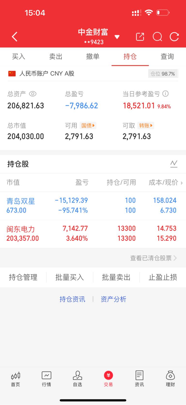 五万实盘的第109天(11月10日),目前206821元。