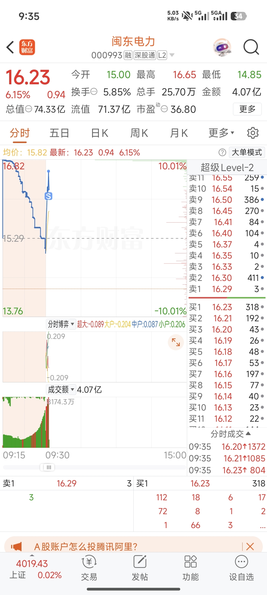 $闽东电力(SZ000993)$ 好消息早上卖了,坏消息2个点接了