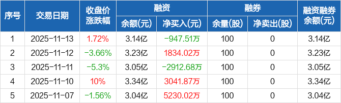 闽东电力:融资净偿还947.51万元,融资余额3.14亿元(11-13)