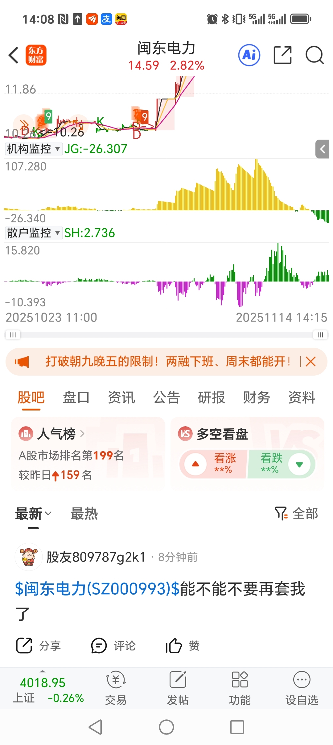 $闽东电力(SZ000993)$ 机构出货了,快跑