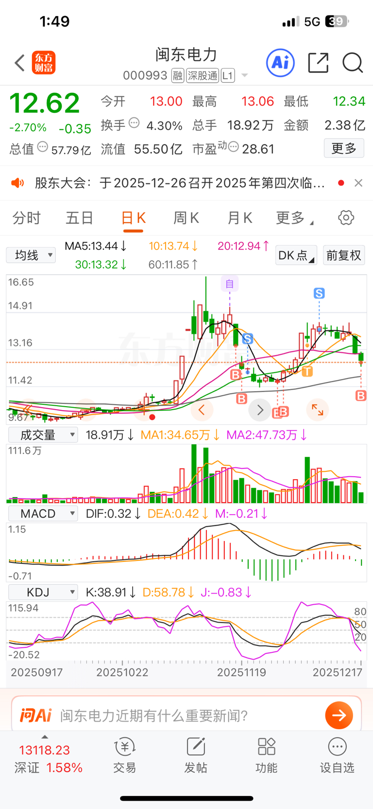 $闽东电力(SZ000993)$ 我胡汉三又回来啦