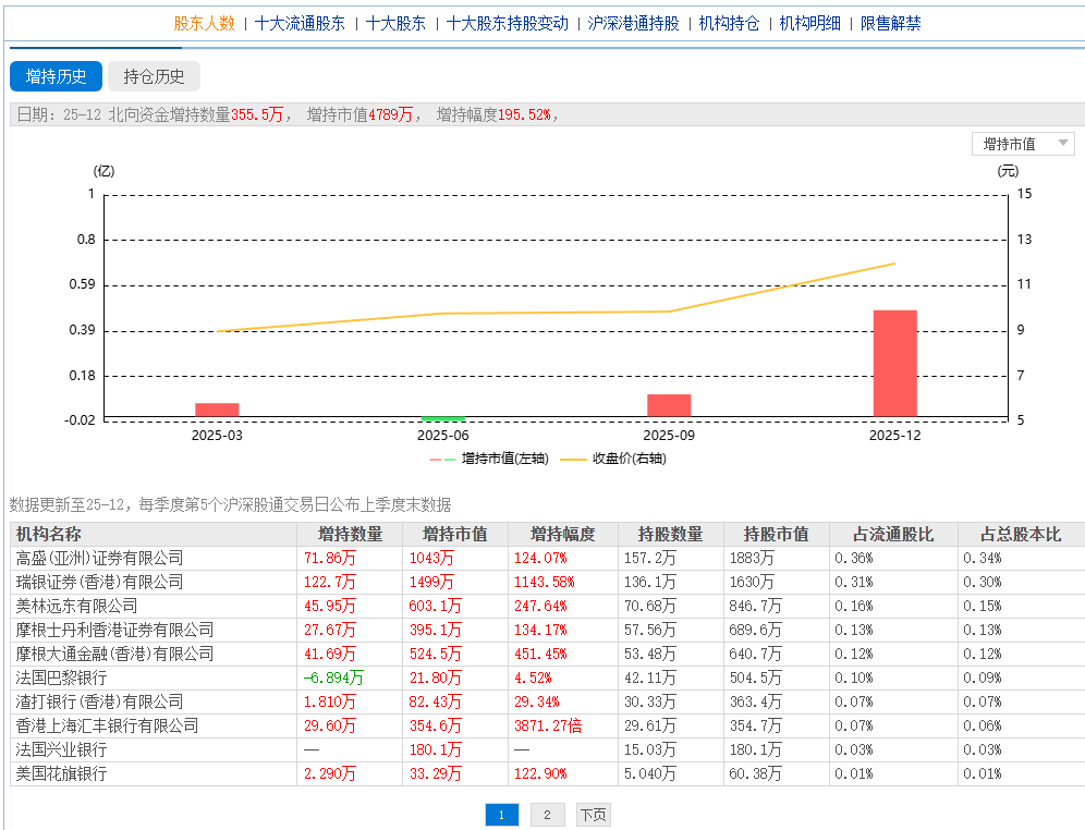 最新外资增仓