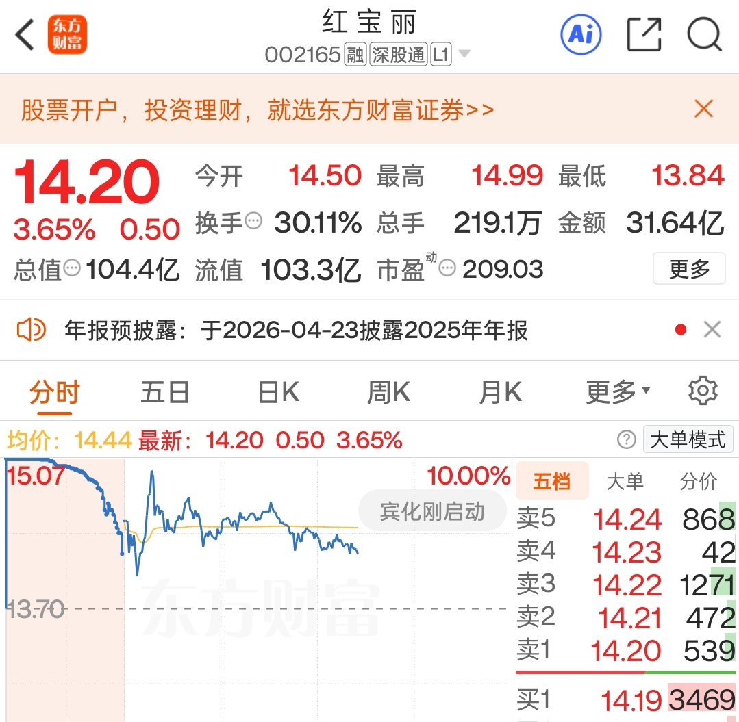 $闽东电力(SZ000993)$ 上个星期13.2清了它来红宝丽