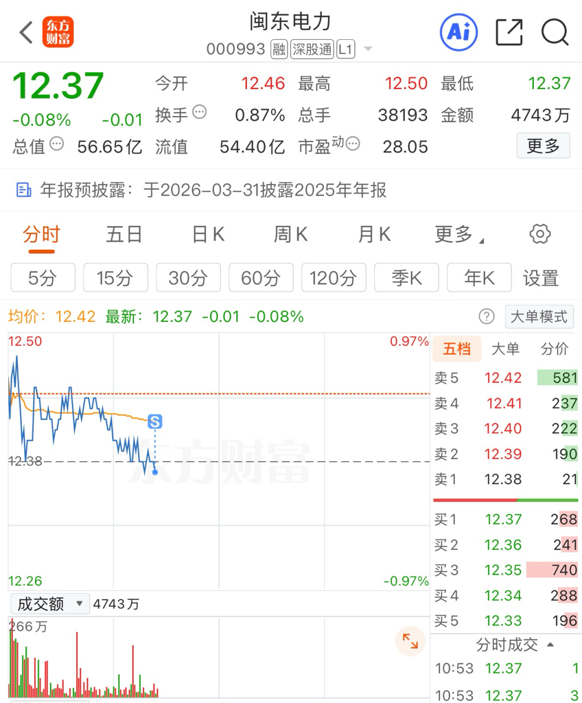$闽东电力(SZ000993)$ 节前清仓,拜拜啦