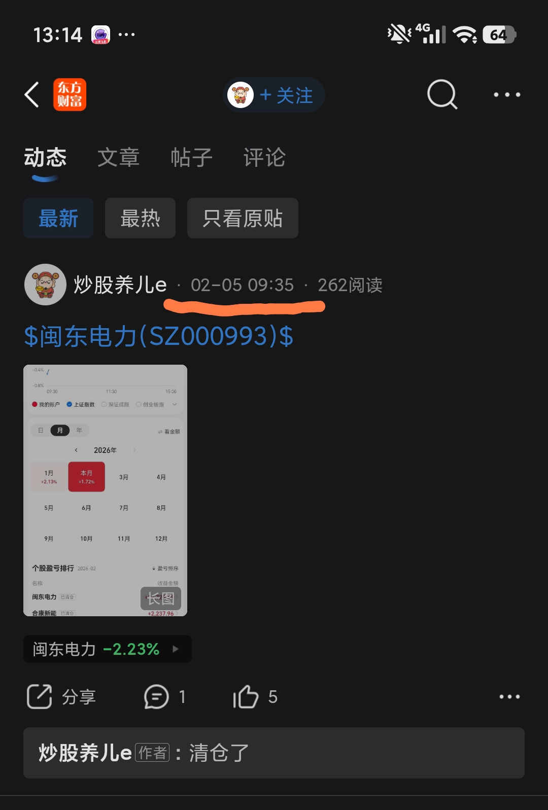 $闽东电力(SZ000993)$ 2月5号就清仓的人,还天天在叫别人抄底,目的是什么?