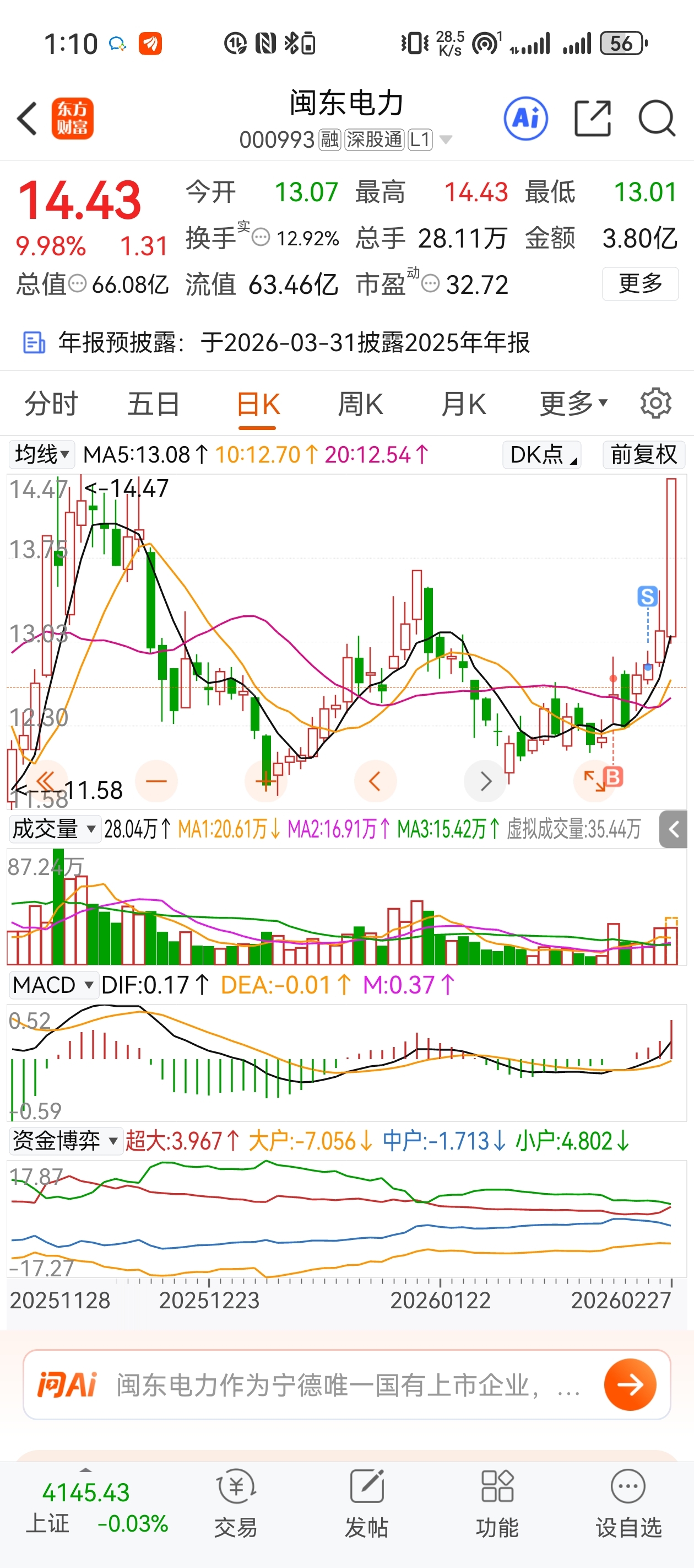 $闽东电力(SZ000993)$ ???
