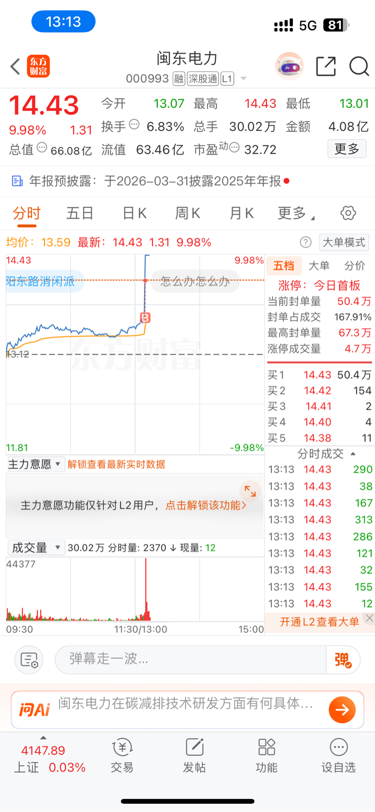 $闽东电力(SZ000993)$ 明天开盘价出