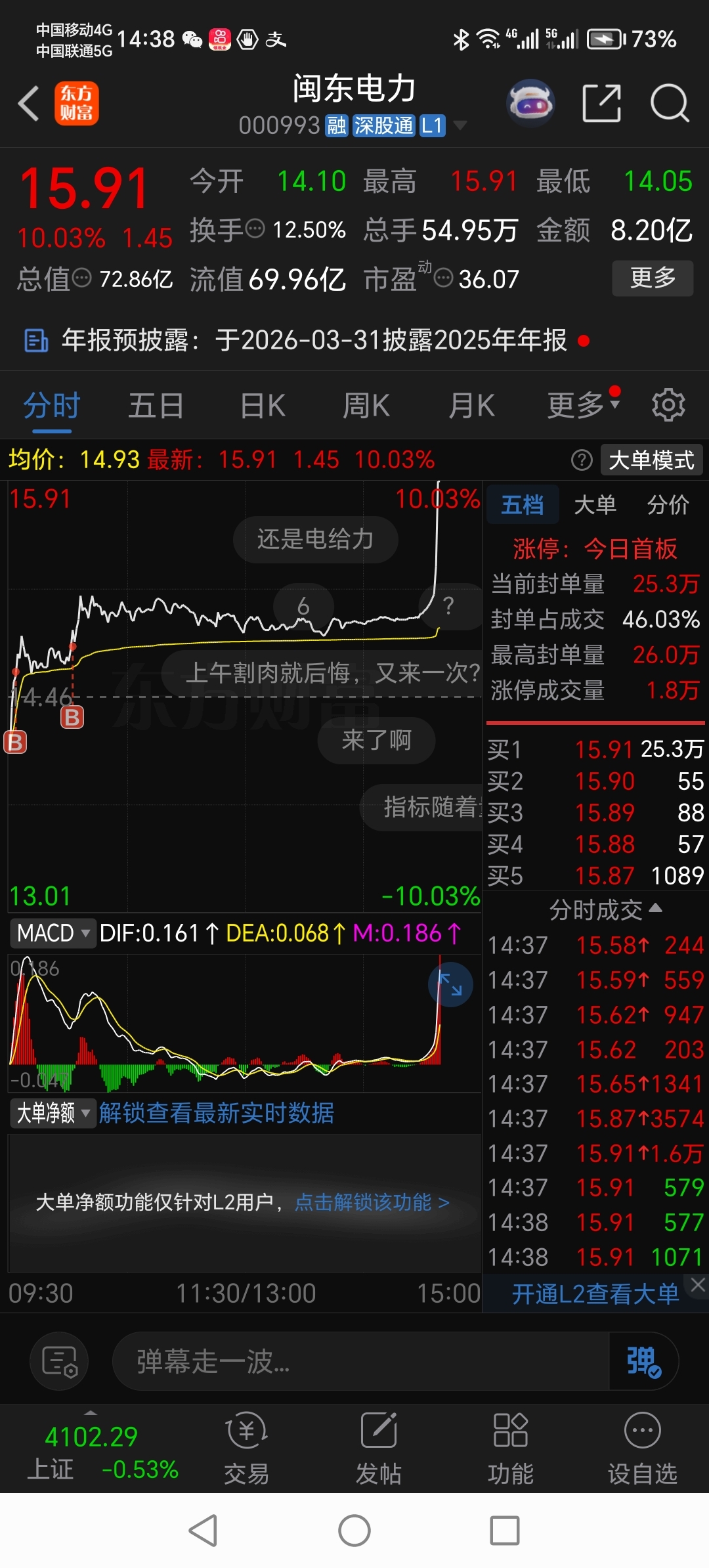$闽东电力(SZ000993)$ 今天这操作不服自己都不行,开盘卖广汇,换成闽东!