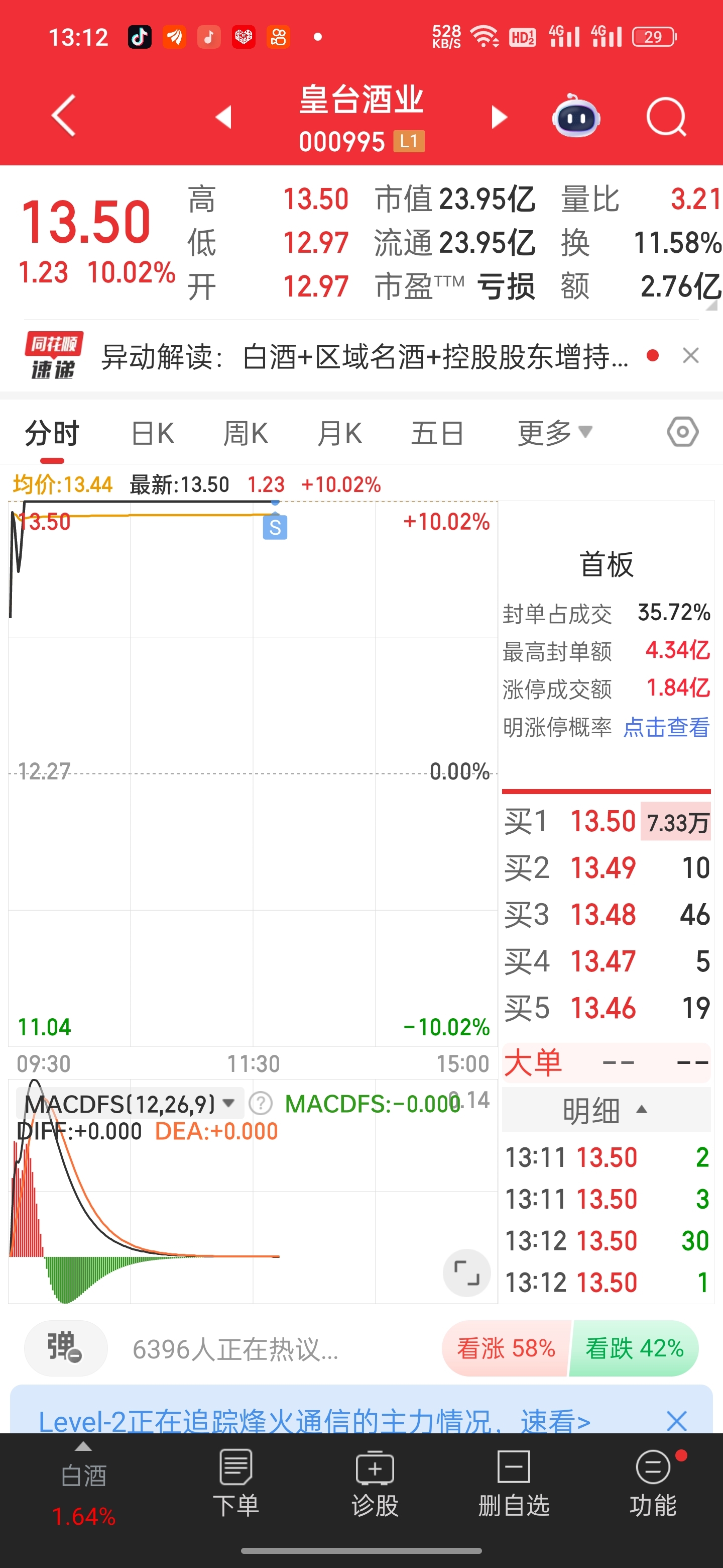清了进特变呆着去了,感觉明天也不一定有溢价,能高开就不错了,白酒板块还是得谨慎一