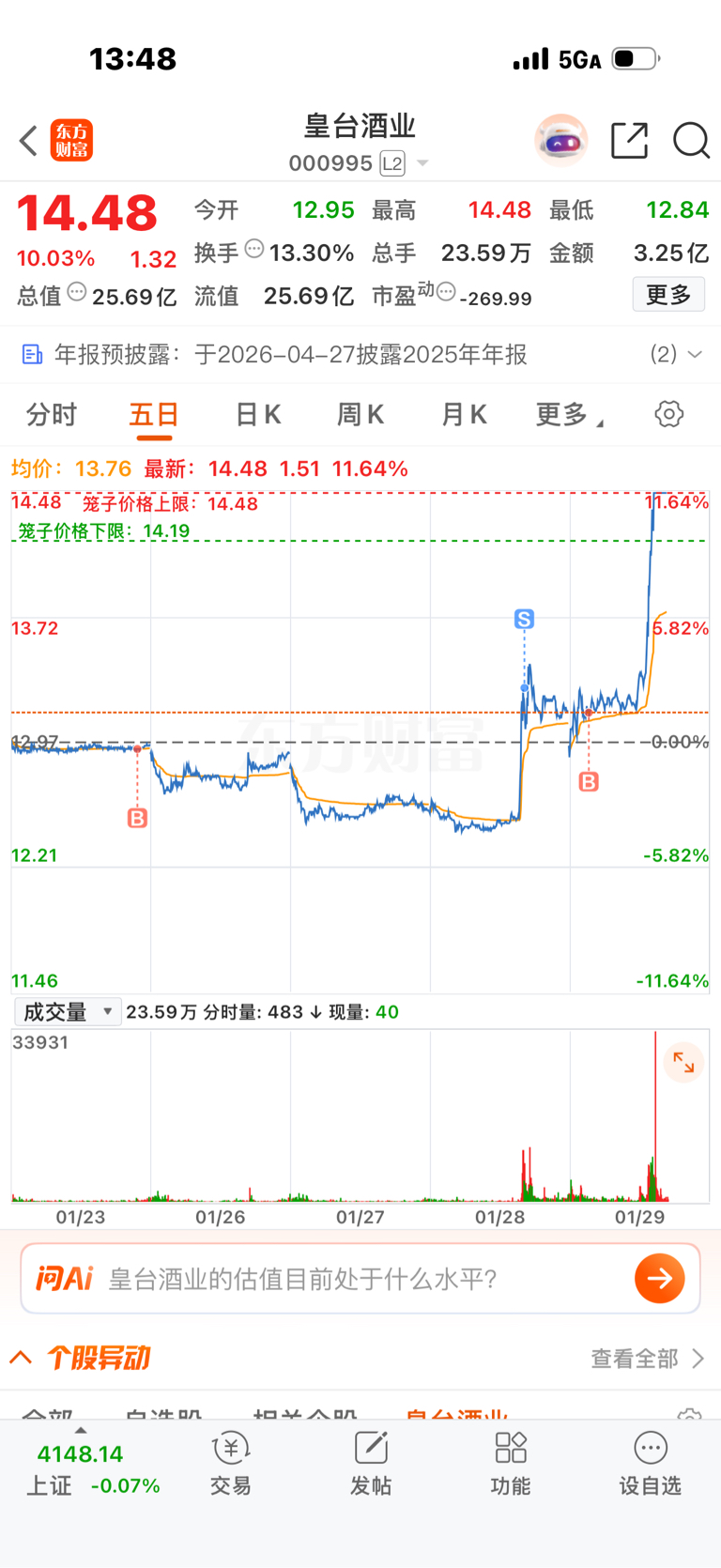 $皇台酒业(SZ000995)$ 还好早上水下接回来了