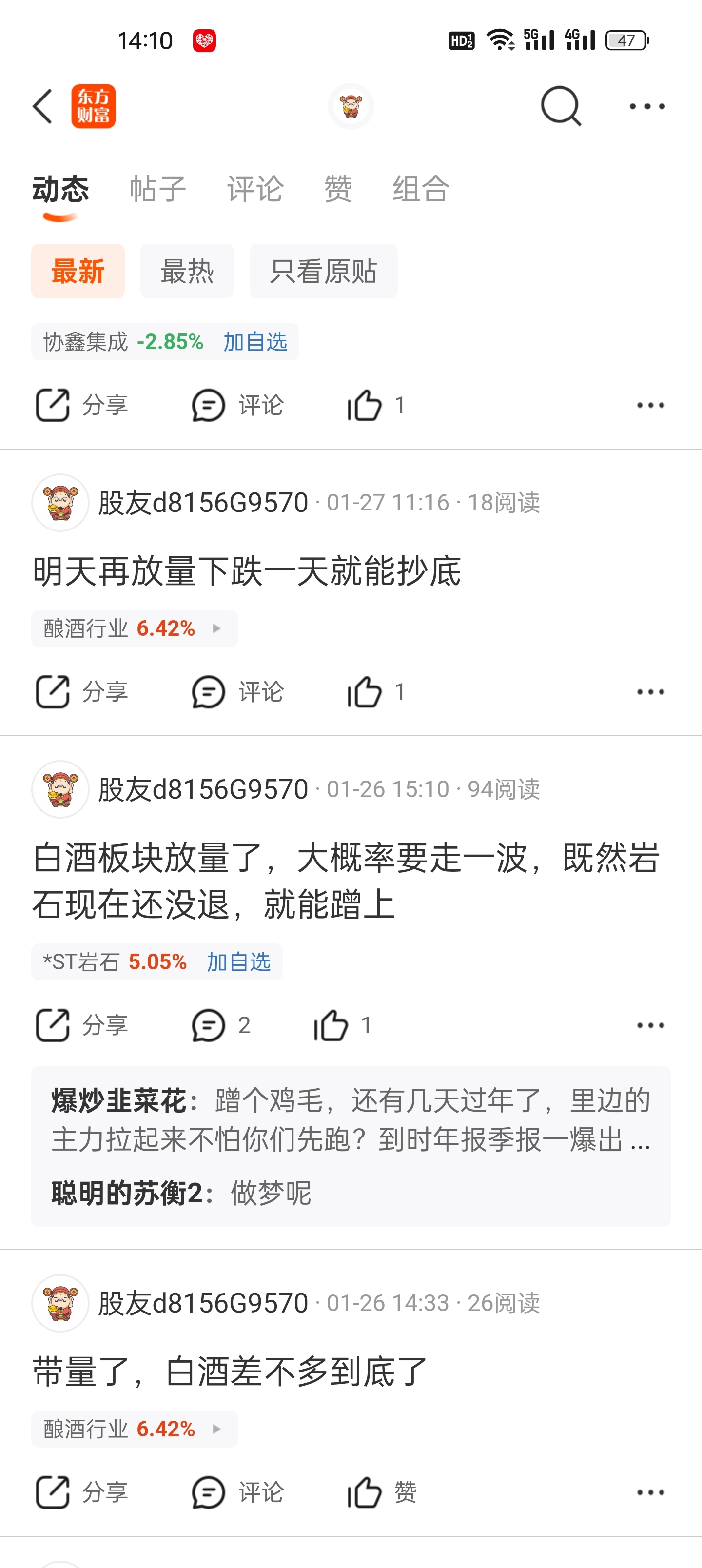 温馨提示: 1.根据《证券法》规定,禁止编造、传播虚假信息或者误导性信息,扰乱证券市场;2.用户在本社区发表的所有资料、言论等仅代表个人观点,与本网站立场无关,不对您构成任何投资建议。用户应基于自己的独立判断,自行决定证券投资并承担相应风险。《东方财富社区管理规定》