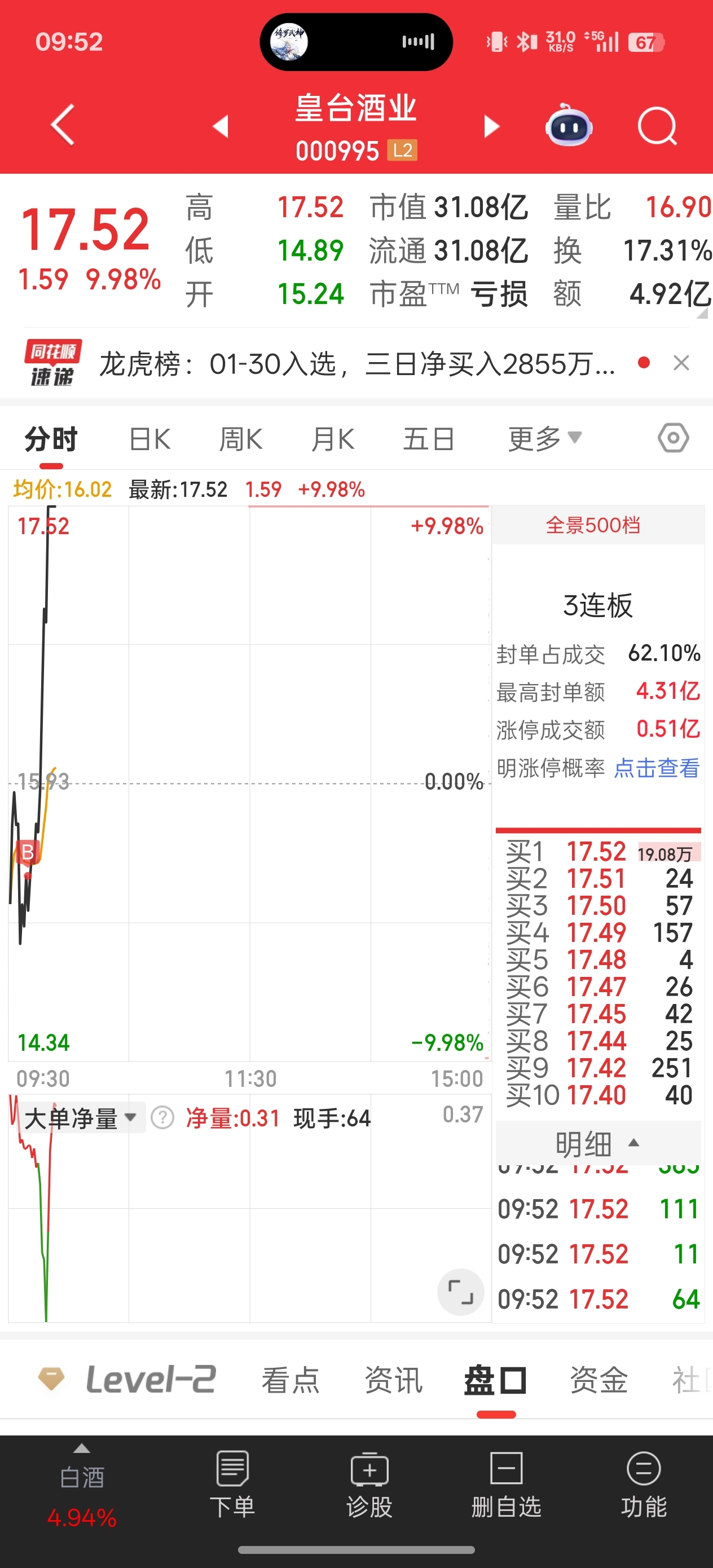 $皇台酒业(SZ000995)$ 看明天有没有肉吃了。哎。。
