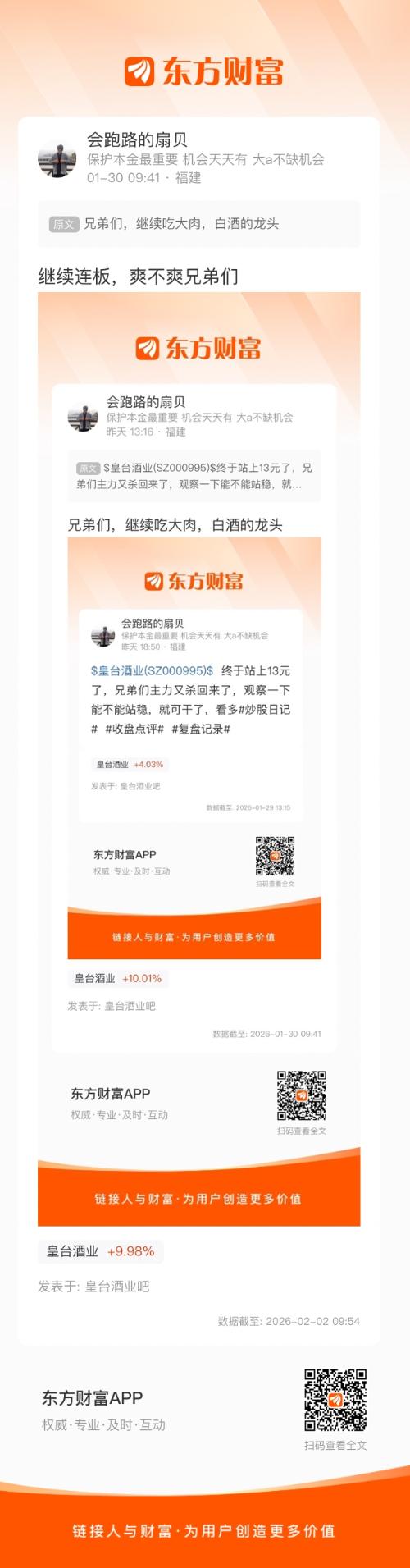 兄弟们,3连板了,龙头怎么样,一买就是龙头$皇台酒业(SZ000995)$