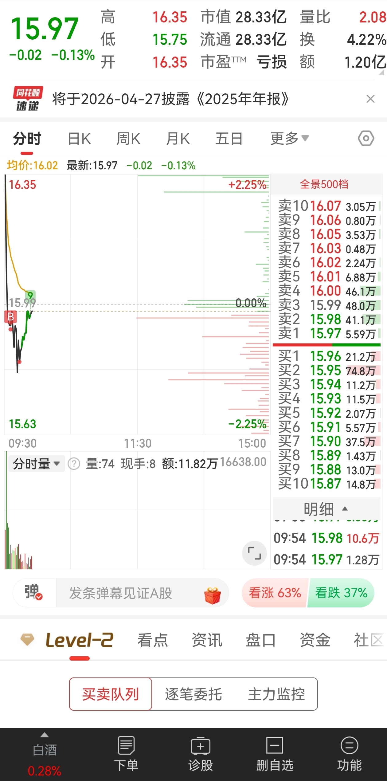 $皇台酒业(SZ000995)$ 打满了你随意了