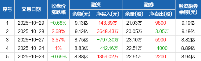 新大陆:融资净买入143.39万元,融资余额9.13亿元(10-29)