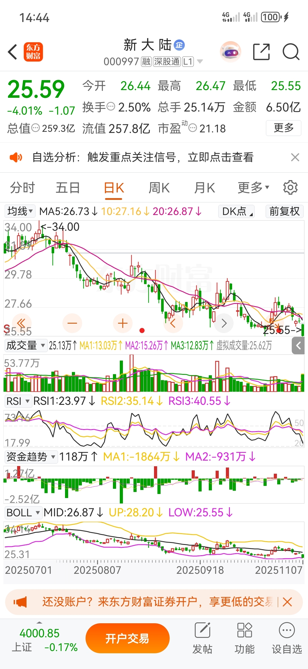 $新 大 陆(SZ000997)$ 看看K线,只要是实体大阴线,下面都会连续下跌