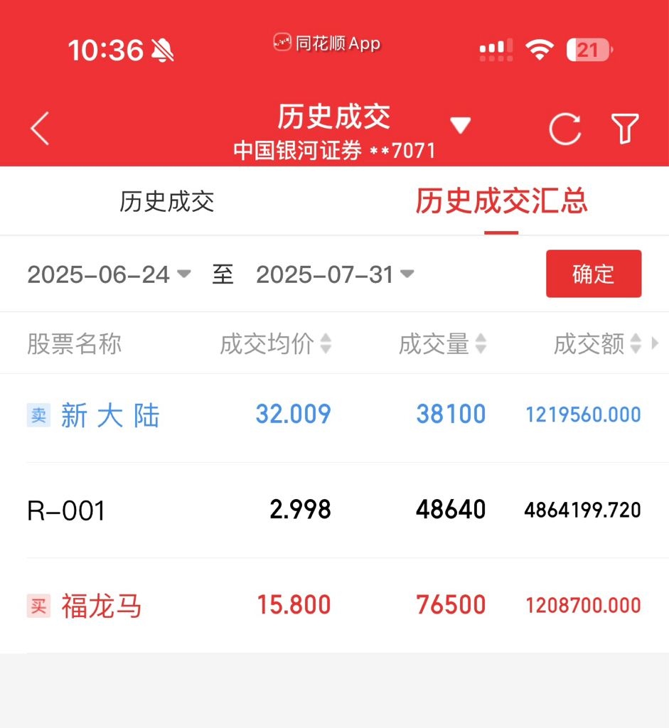 今年最对的决定,就是32块卖掉了新大陆,满仓15.8换了福龙马,上周又25块把新大陆买回来了!在福龙马身上吃了75个点,躲过了新大陆30个点的回调!
