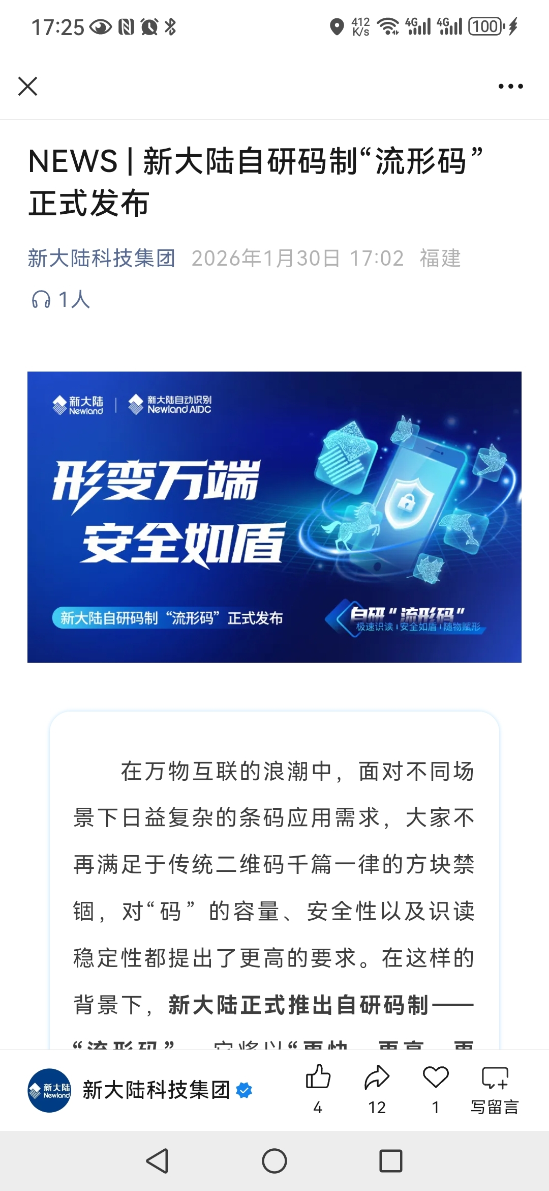 $新 大 陆(SZ000997)$ 九宫格码发布并制定国家标准