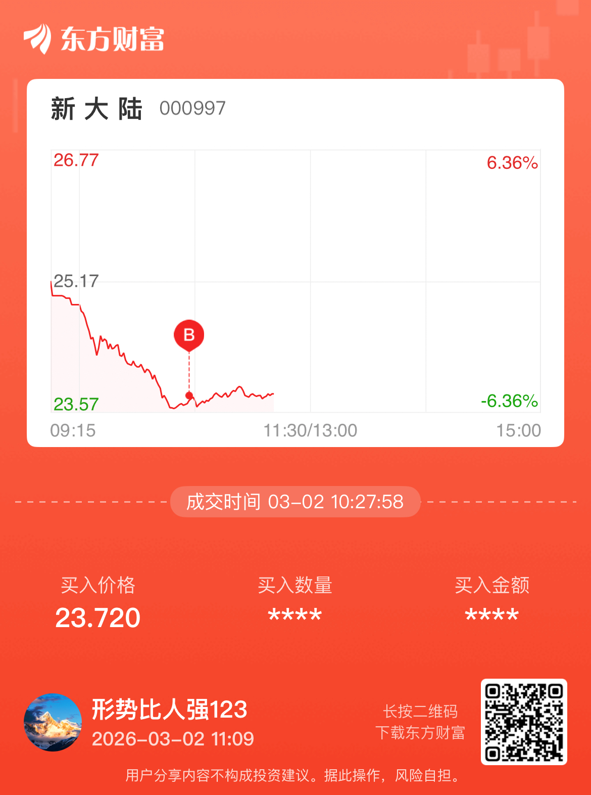 温馨提示: 1.根据《证券法》规定,禁止编造、传播虚假信息或者误导性信息,扰乱证券市场;2.用户在本社区发表的所有资料、言论等仅代表个人观点,与本网站立场无关,不对您构成任何投资建议。用户应基于自己的独立判断,自行决定证券投资并承担相应风险。《东方财富社区管理规定》