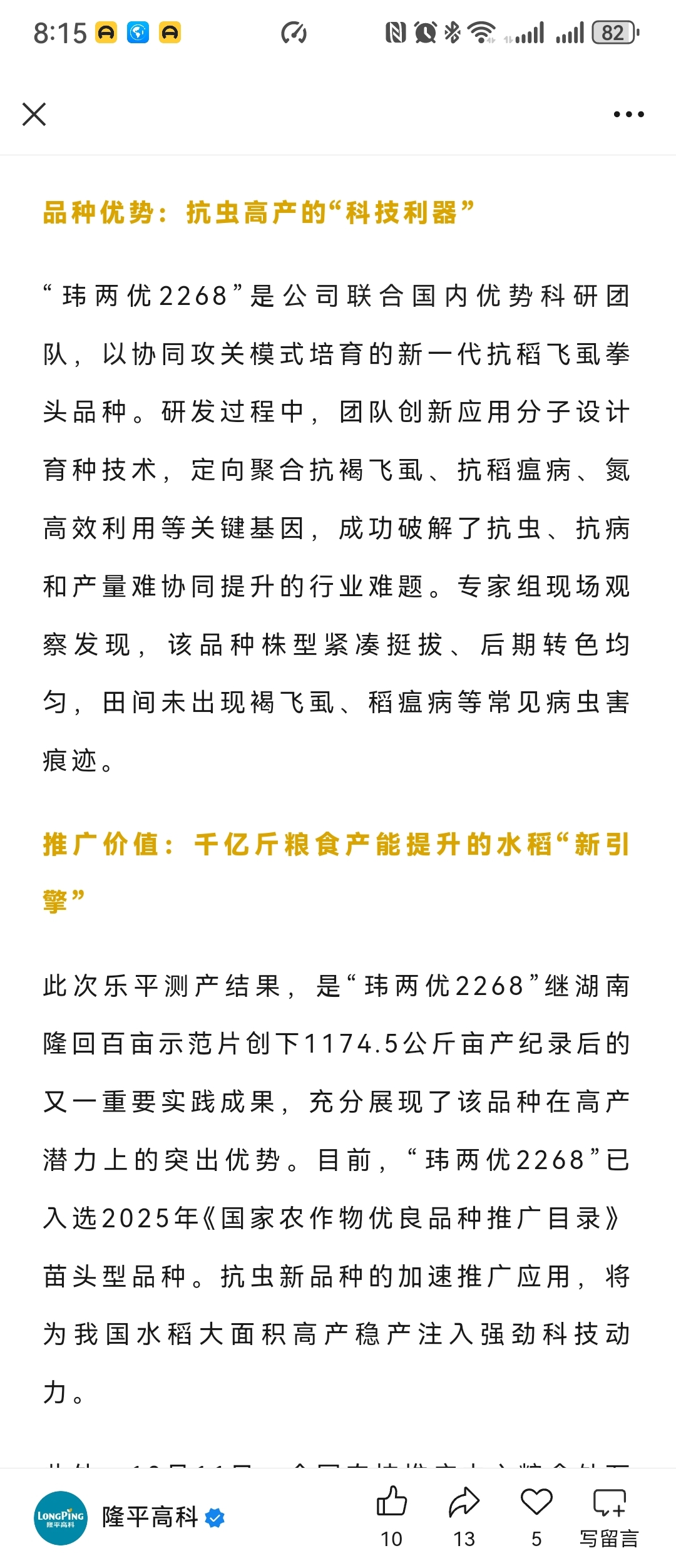 $隆平高科(SZ000998)$ 牛逼了,非转基因抗虫水稻。