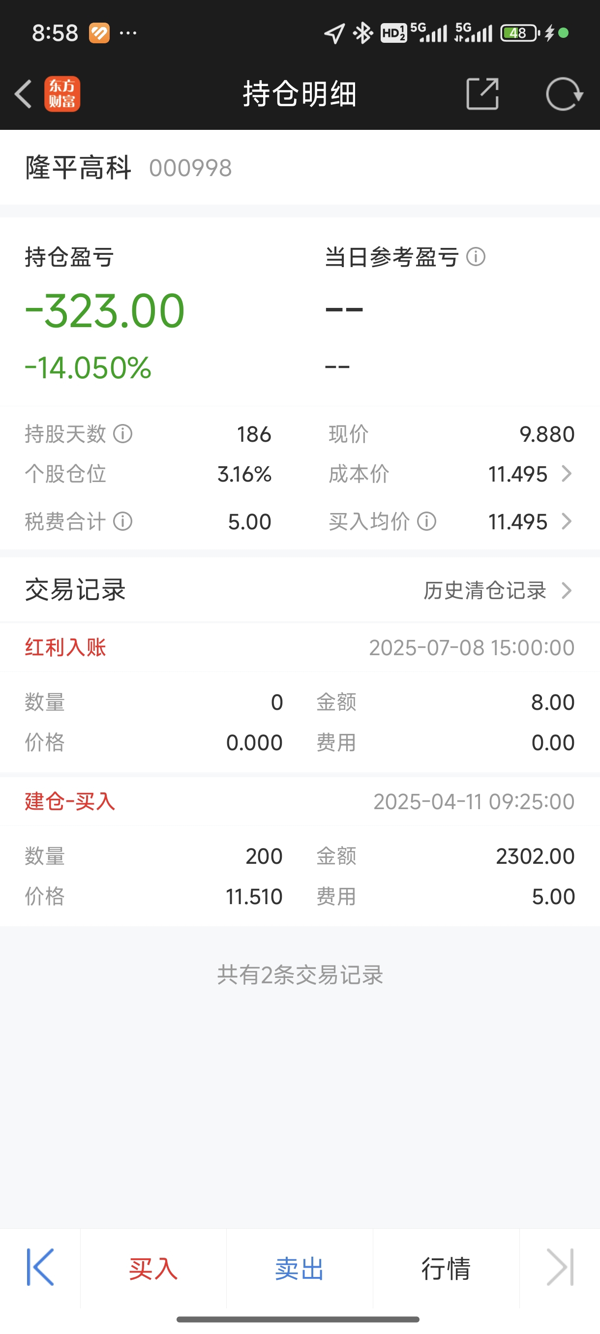 $隆平高科(SZ000998)$ 最高位买进,还好也没买多,反正2000来块就放这里了,就当给农业做奉献了吧,亏没就亏没了,就冲这个名字也不卖了