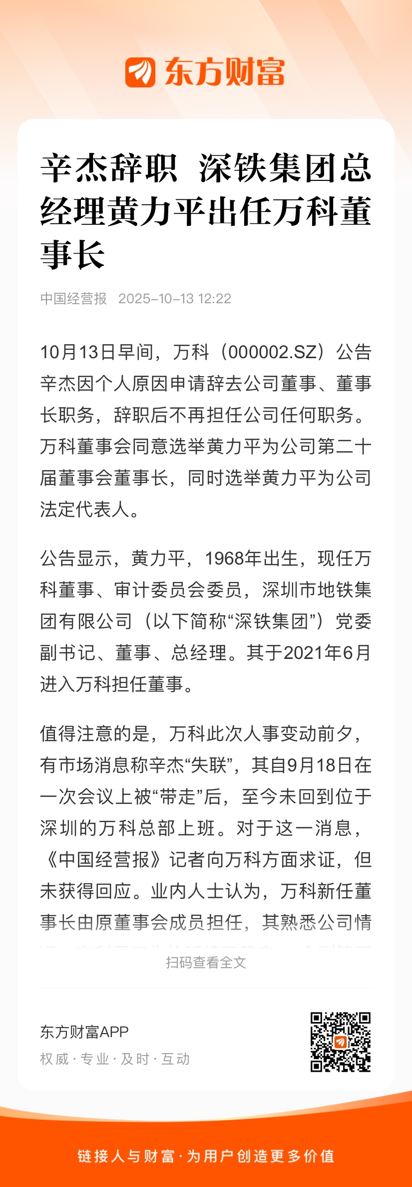 辛辞职,和万科没有关系。祝出事,和万科没有关系。