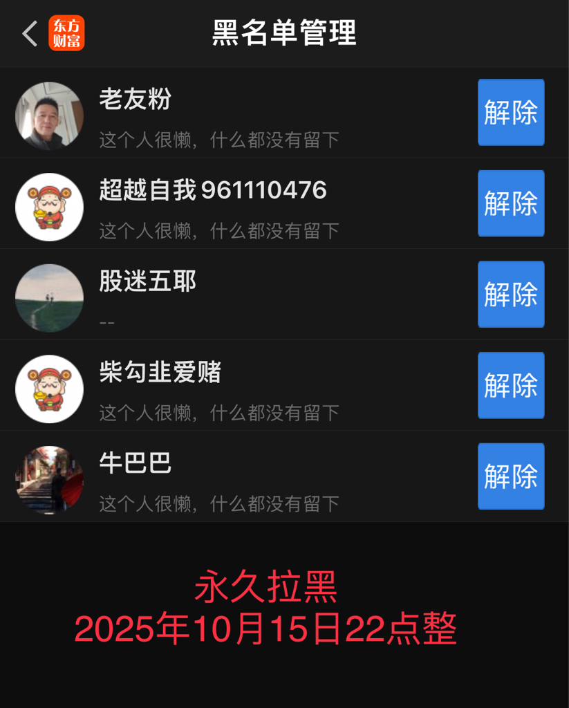 不喜欢我的,可以把我拉黑,求之不得!这是我永久拉黑的名单!永久!