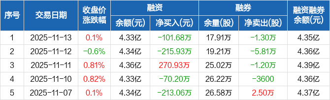 隆平高科:融资净偿还101.68万元,融资余额4.33亿元(11-13)