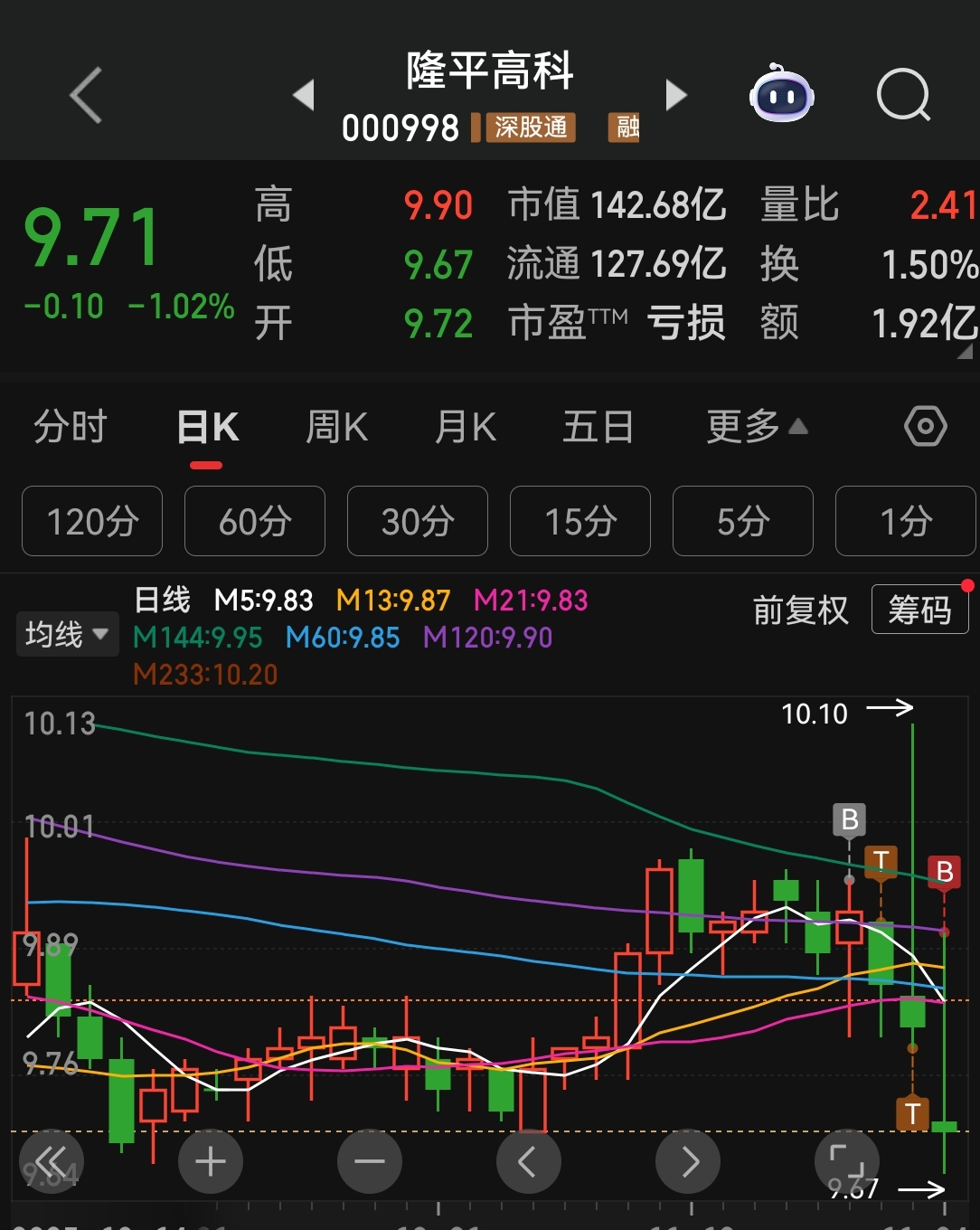 $隆平高科(SZ000998)$ 让我保本走吧,9.83,不玩了