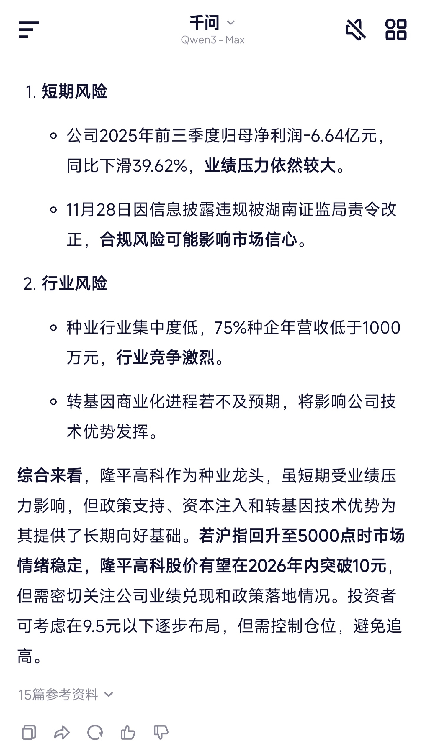 $隆平高科(SZ000998)$ 问了千问,沪指5000点有望突破10元