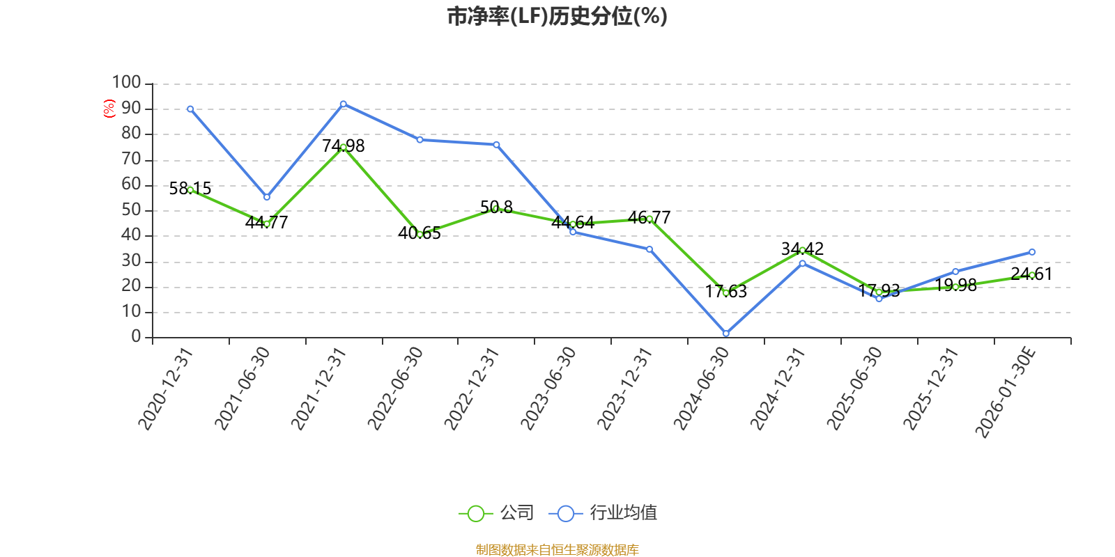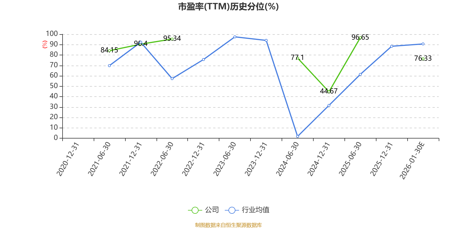 市盈率、市净率为负时,不显示当期分位数,会导致折线图中断。