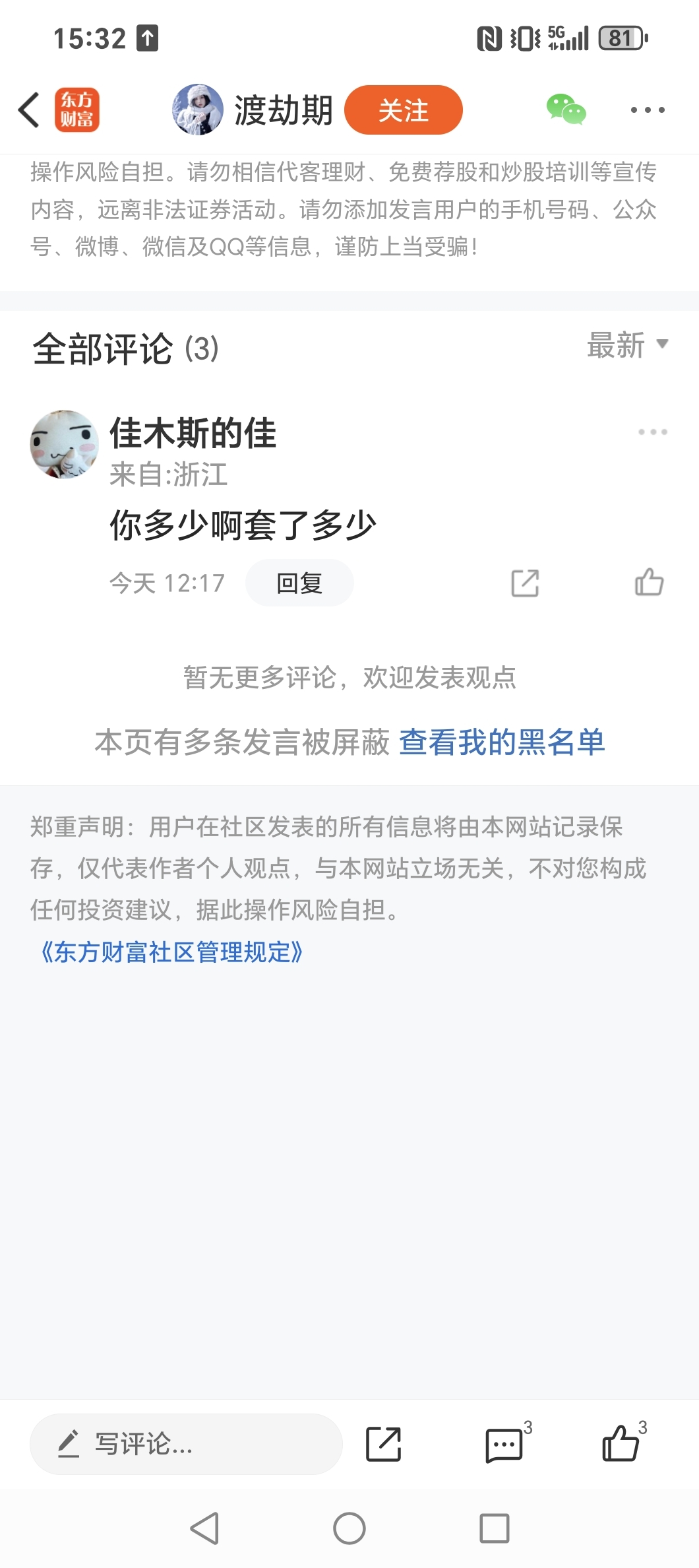 温馨提示: 1.根据《证券法》规定,禁止编造、传播虚假信息或者误导性信息,扰乱证券市场;2.用户在本社区发表的所有资料、言论等仅代表个人观点,与本网站立场无关,不对您构成任何投资建议。用户应基于自己的独立判断,自行决定证券投资并承担相应风险。《东方财富社区管理规定》
