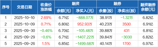 华润三九:融资净偿还888.07万元,融资余额6.71亿元(10-10)