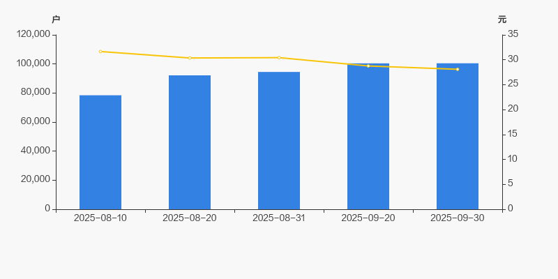 2025年8月10日至今,公司股东户数显著增长,区间涨幅为28.07%。2025年8月10日至2025年9月30日区间股价下降11.28%。