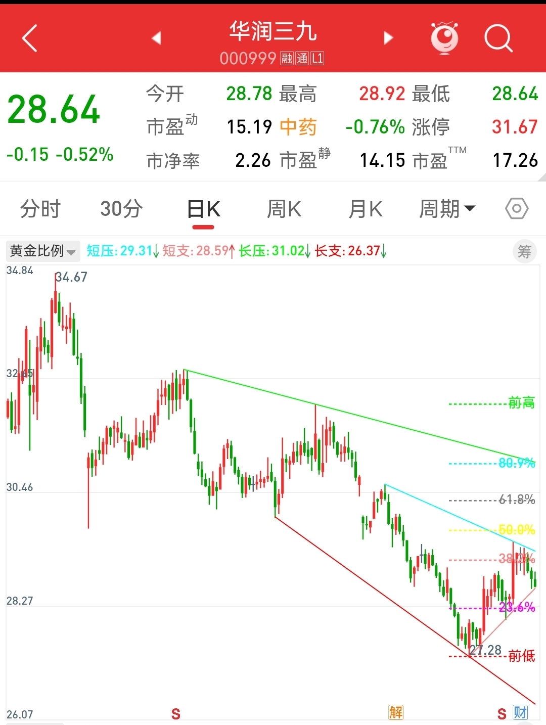 $华润三九(SZ000999)$ 支撑位已到,接下来怎么走?