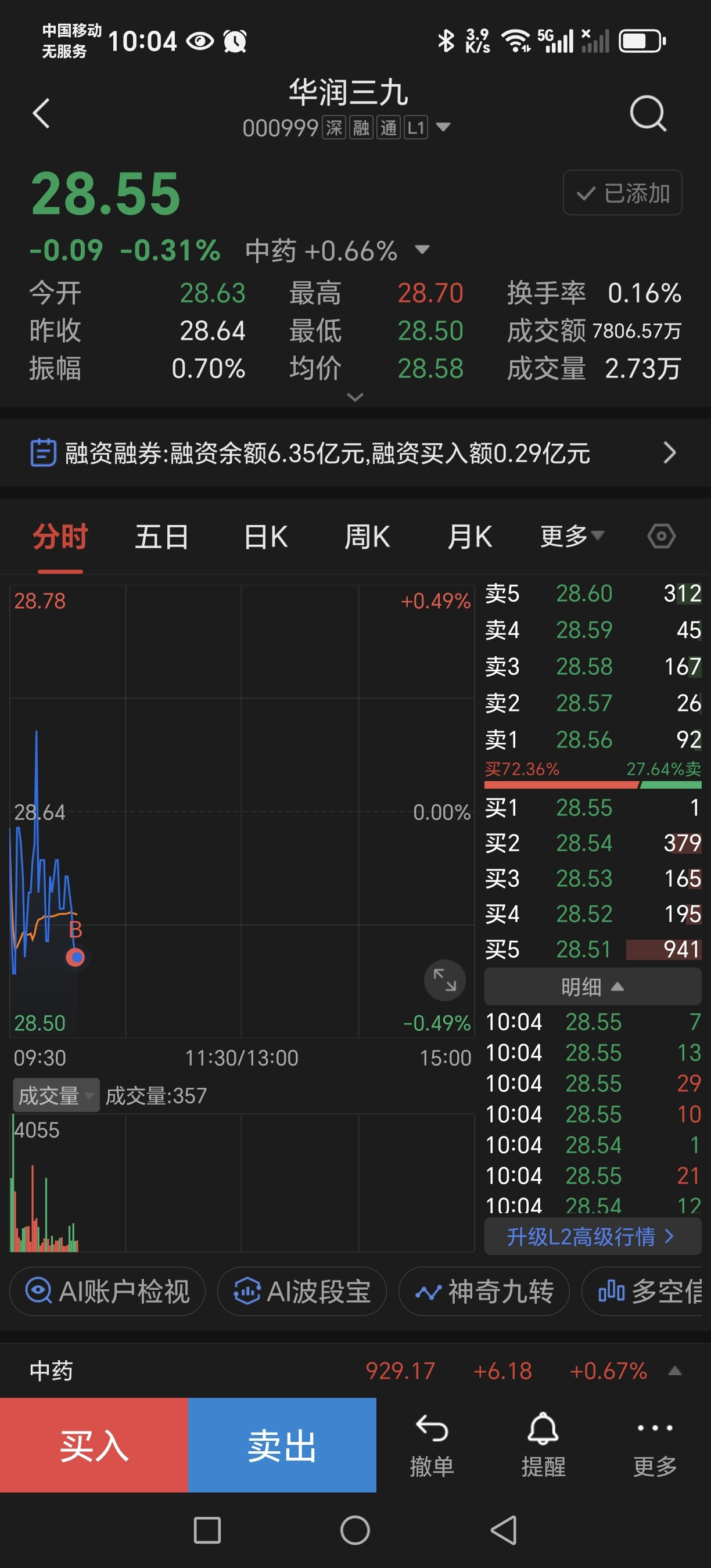 你炒短线的可以的,我不交易,我主要是长期拿分红