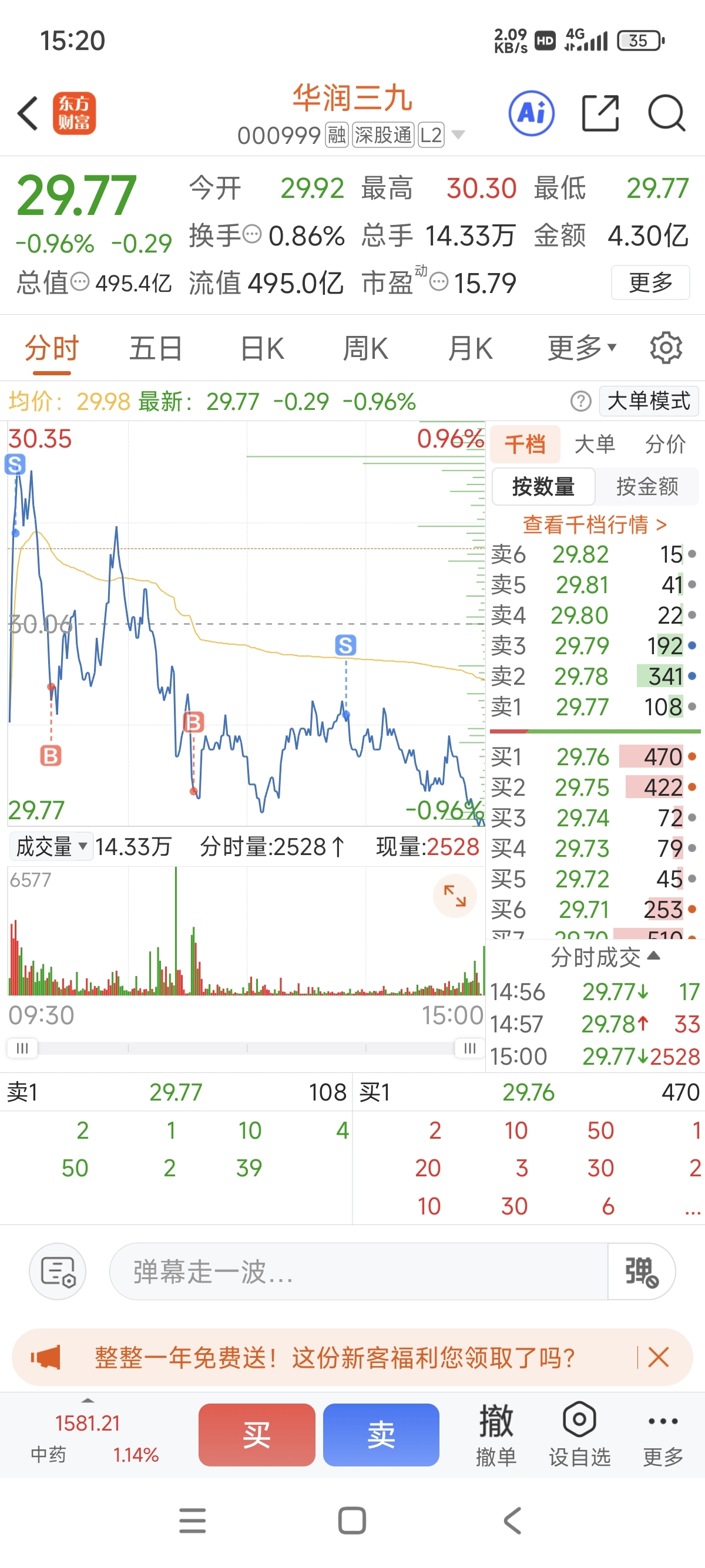 $华润三九(SZ000999)$ 就是不靠谱,拉起来就要T。