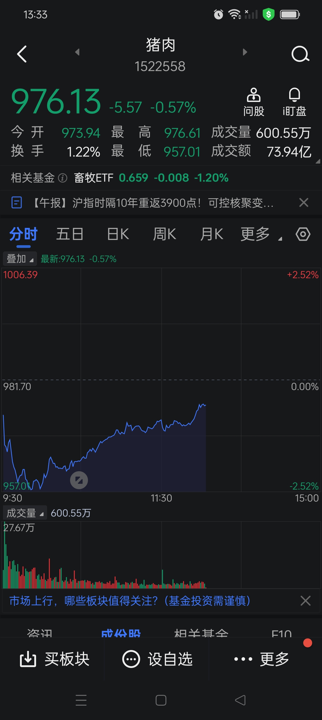 板块也不跟了!板块从–2.5%涨到–0.5%这货还跌2%左右
