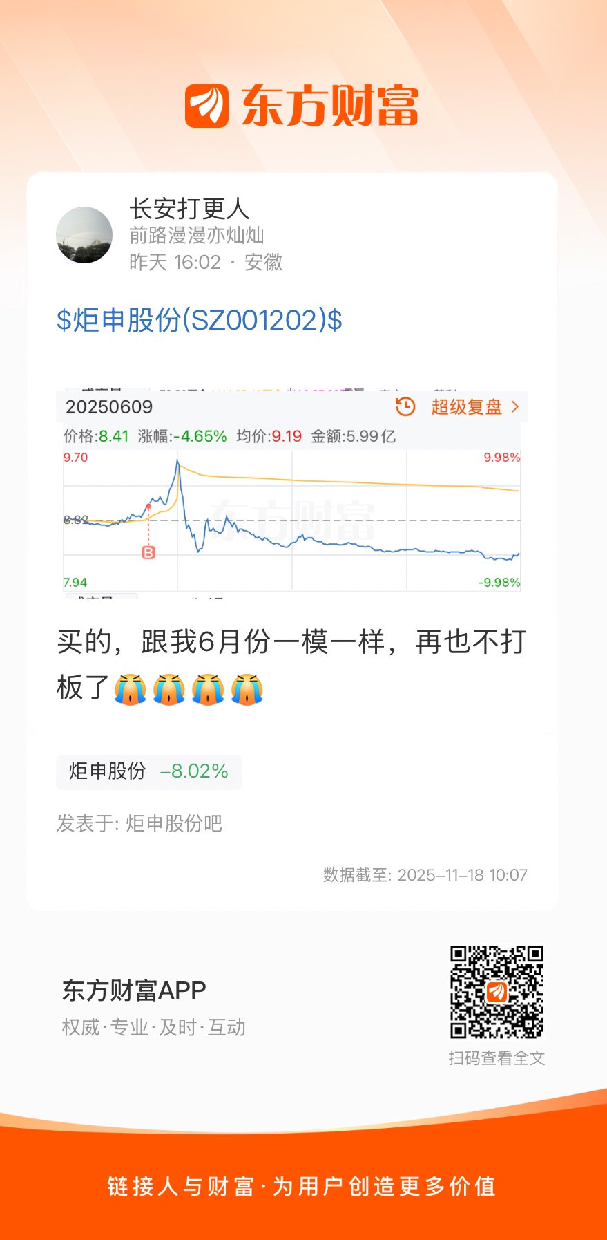 温馨提示: 1.根据《证券法》规定,禁止编造、传播虚假信息或者误导性信息,扰乱证券市场;2.用户在本社区发表的所有资料、言论等仅代表个人观点,与本网站立场无关,不对您构成任何投资建议。用户应基于自己的独立判断,自行决定证券投资并承担相应风险。《东方财富社区管理规定》