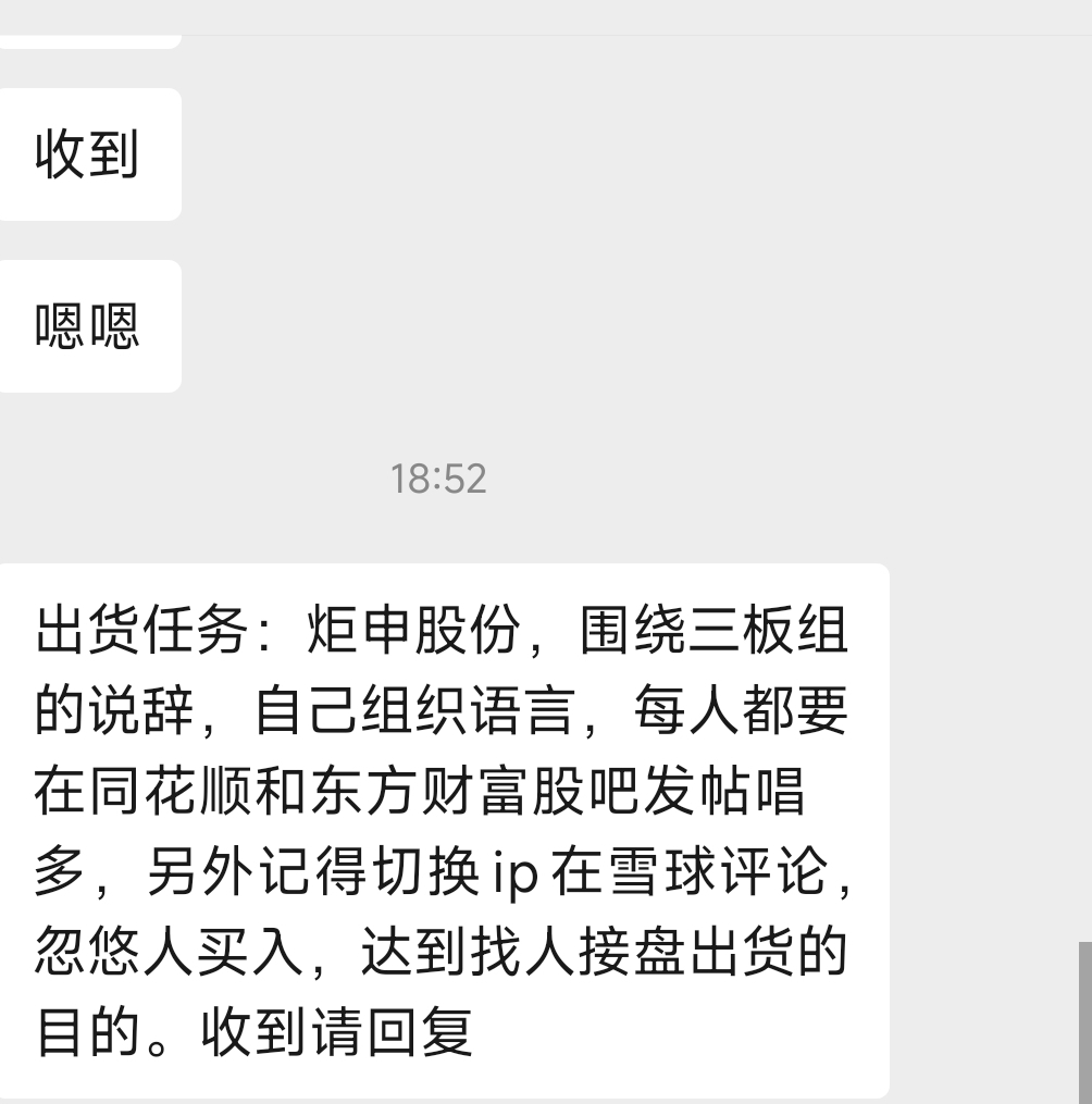 炬申股份,大家注意了,同花顺和东方财富这两个股吧,都有很多水军的号在唱多,想忽悠你们买入,就问你们一句,能赚的票,别人会不会在网络上告诉你们陌生人?它们这些唱多的托,是想骗你们接盘。它们这些水军如同非洲的鬣狗,只要看到有人揭露它们的唱多计划,就会在评论区攻击。如果你们不信,可以看俺的历史发帖,历史是无法更改的