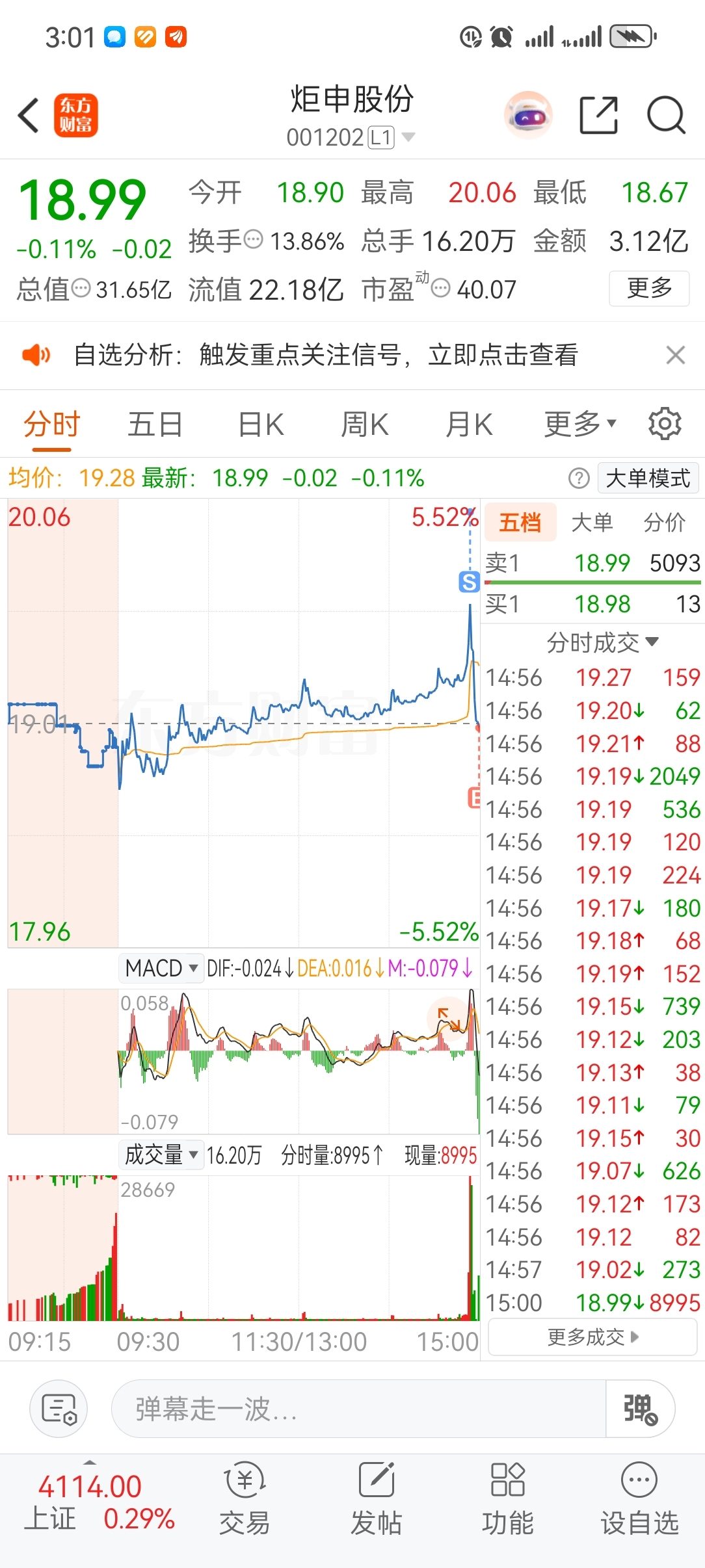$炬申股份(SZ001202)$ 这跑了是不是不应该接