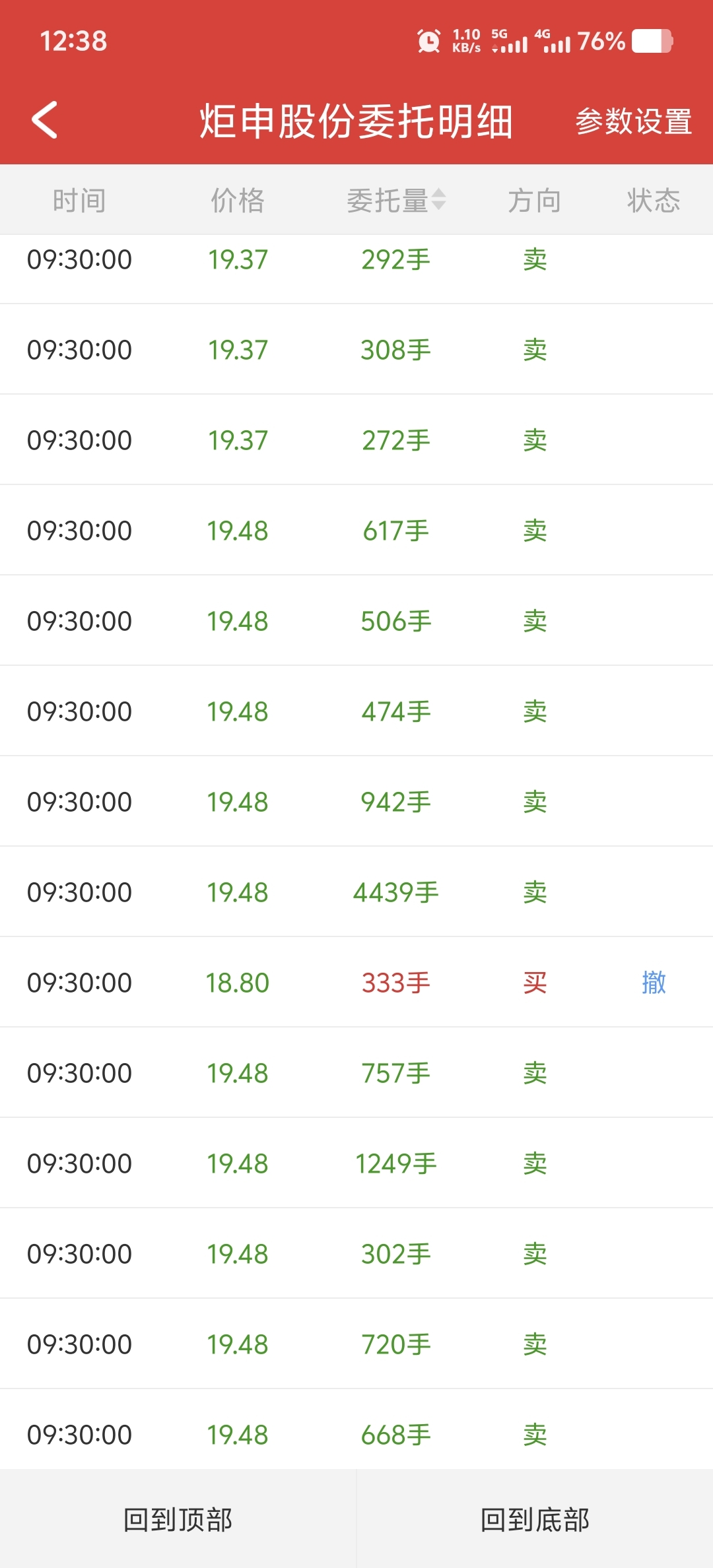 $炬申股份(SZ001202)$ 开盘就在开盘价19.48元挂了1万多手卖单。2000多万啊。今天这票不跌停都对不起这个主力。不怕死的多买点,留着当棺材本用。明天补跌后天补跌。周五也是脑壳昏了,抄底这个。中午一看还好割了。下午百分百跌停的。那2000多万的大哥慢慢出货吧。下午应该就能全部买完。反正他也亏了起码7个点。吃一堑长一智。我以后看到三板组就不加自选了