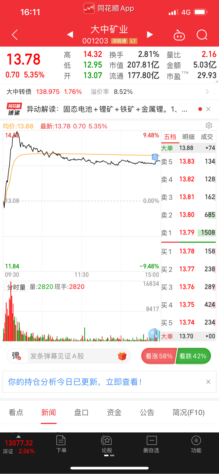 $大中矿业(SZ001203)$ 按照自己的交易模型,今天尾盘做了减半仓的操作。但是我还是要幻想明天一字板涨停。操作是指令,幻想是快乐