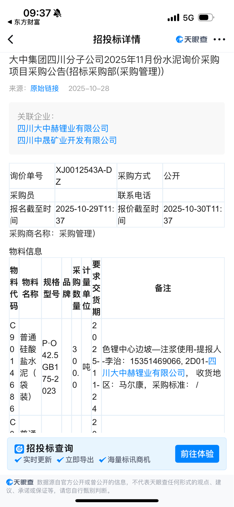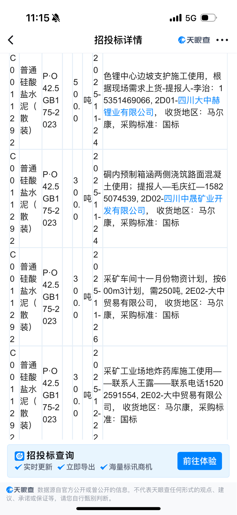 $大中矿业(SZ001203)$ 四川大中赫施工如火如荼进行中,一次招标1700吨水泥,大中湖南和四川锂矿项目建设均进入了快车道!