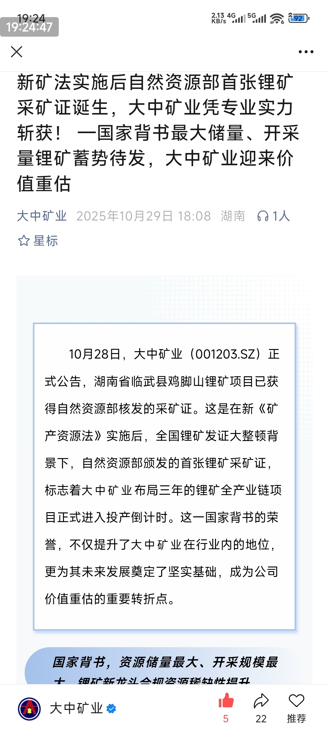 下一个大有能源之大中矿业,大中矿业官方微信公众号:新矿法实施后自然资源部首张锂矿